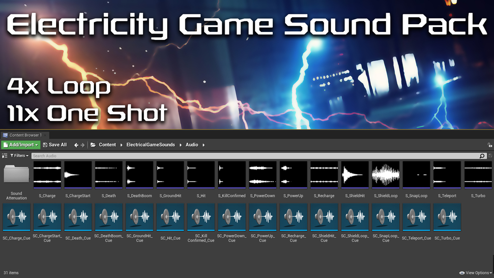 Pack of electricity sound effects for a game or etc. Observe video for examples.